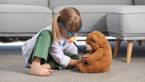 A,Cute,Little,Girl,Is,Playing,In,A,Doctor,Costume