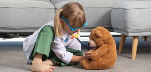 A,Cute,Little,Girl,Is,Playing,In,A,Doctor,Costume